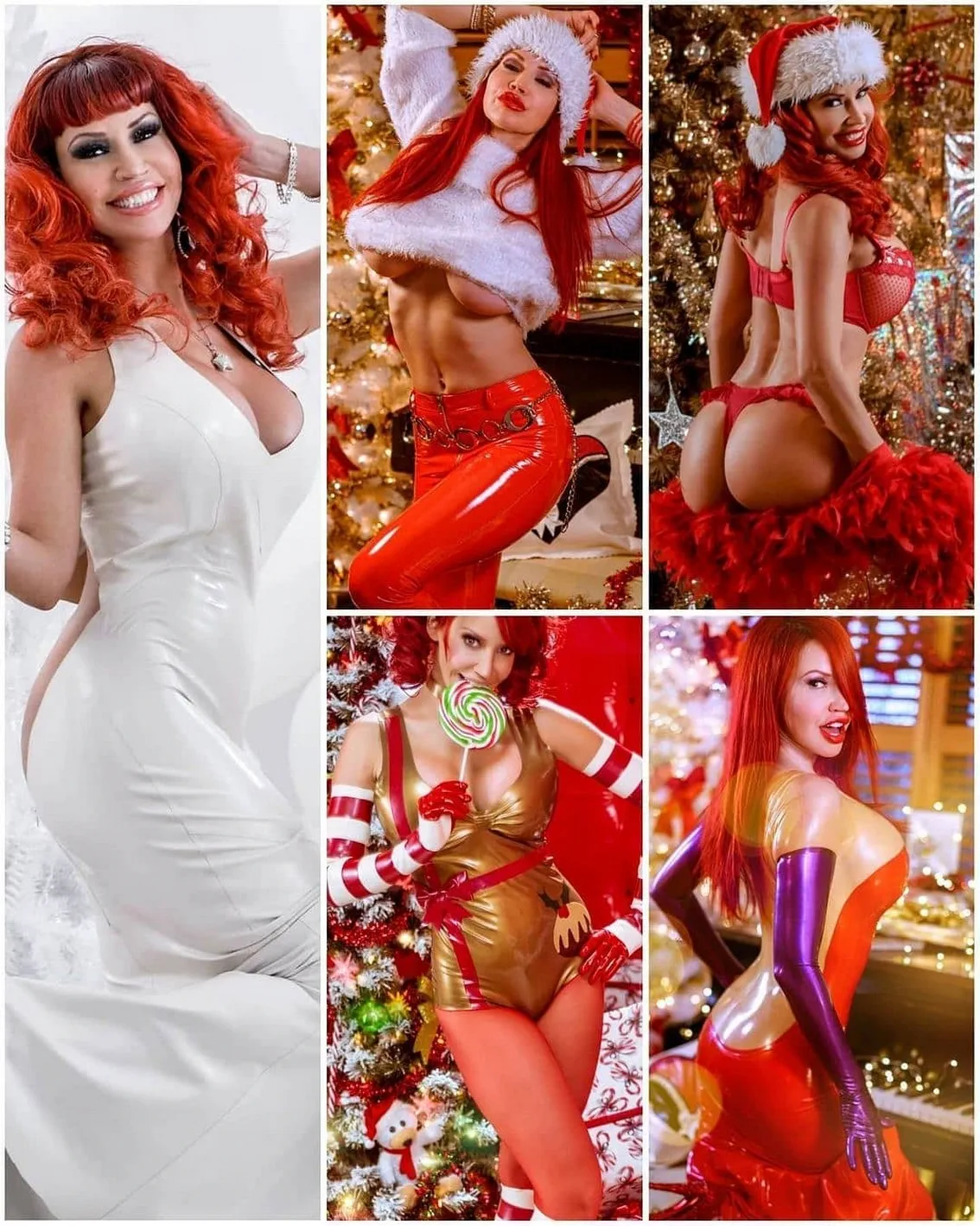 Bov Cosplay, Bianka B Master controleert veel kerstprolkes, van Santa Classics in Red Underwear tot Black Latex Monsters. Op elke foto vertonen Bancabes -meesters veel spannend dankzij hun enorme en buitengewone borsten. Welke kleding vind je het leukst?