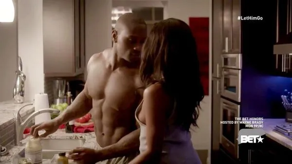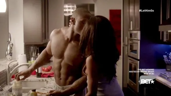 In de volgende scène draagt Gabrielle Union een tanktop zonder beha. Ze laat de zijkant van haar borsten zien, terwijl ze naar een man in een keuken toe loopt en hem kust.