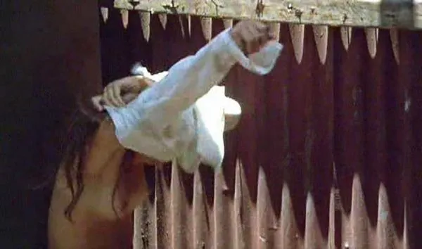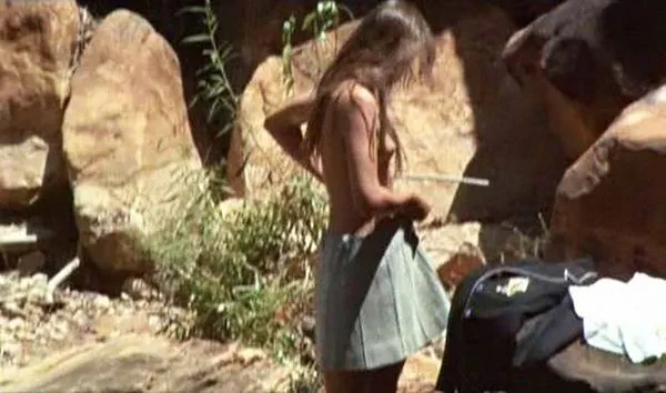 Nu hebben we de scène uit dezelfde film, waarin Jenny Agutter topless staat. Een Aborigine staart haar aan voordat ze door het gebouw rent en dan hurkt in de hoek om een wit overhemd aan te trekken om haar naakte tieten te bedekken.