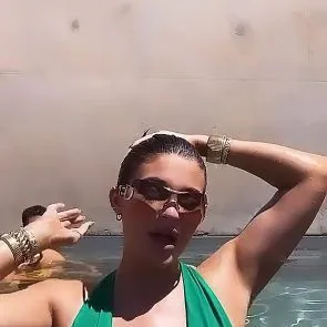 Maar toch, bikini is haar natuurlijke staat van bewoning ... We denken dat Kylie minstens 8 uur per dag bikini draagt. Ze kan niet heter zijn! Toen we besloten om je deze collectie te geven, hebben we gefocust op de nieuwste foto's. Zodat we Kylie kunnen zien poseren in het zwembad. Ze brengt haar enorme kont naar ons en cameraman. Of het is gewoon haar beste vriend Stassie ... We kunnen er gewoon van dromen om foto's van Jenner te maken en dan een pijpbeurt te nemen uit deze nepmond ...