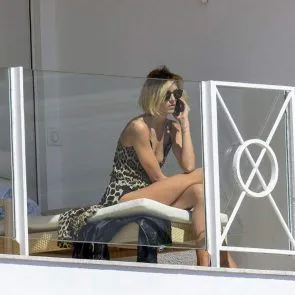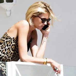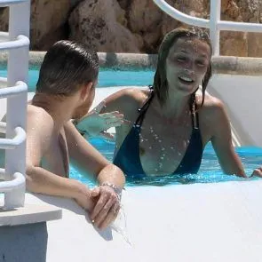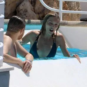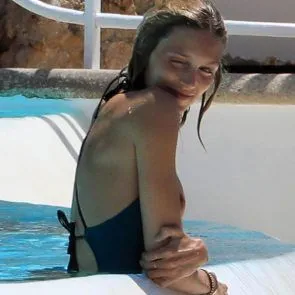 Anja Rubik nip slip bij zwembad